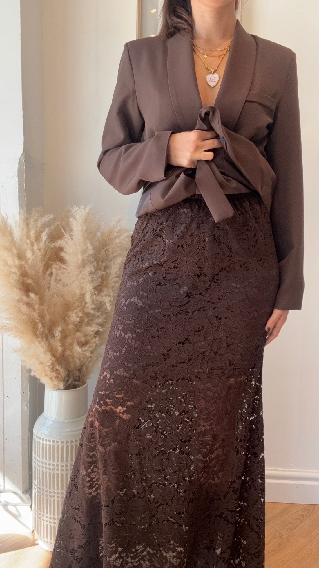Gonna pizzo marrone