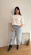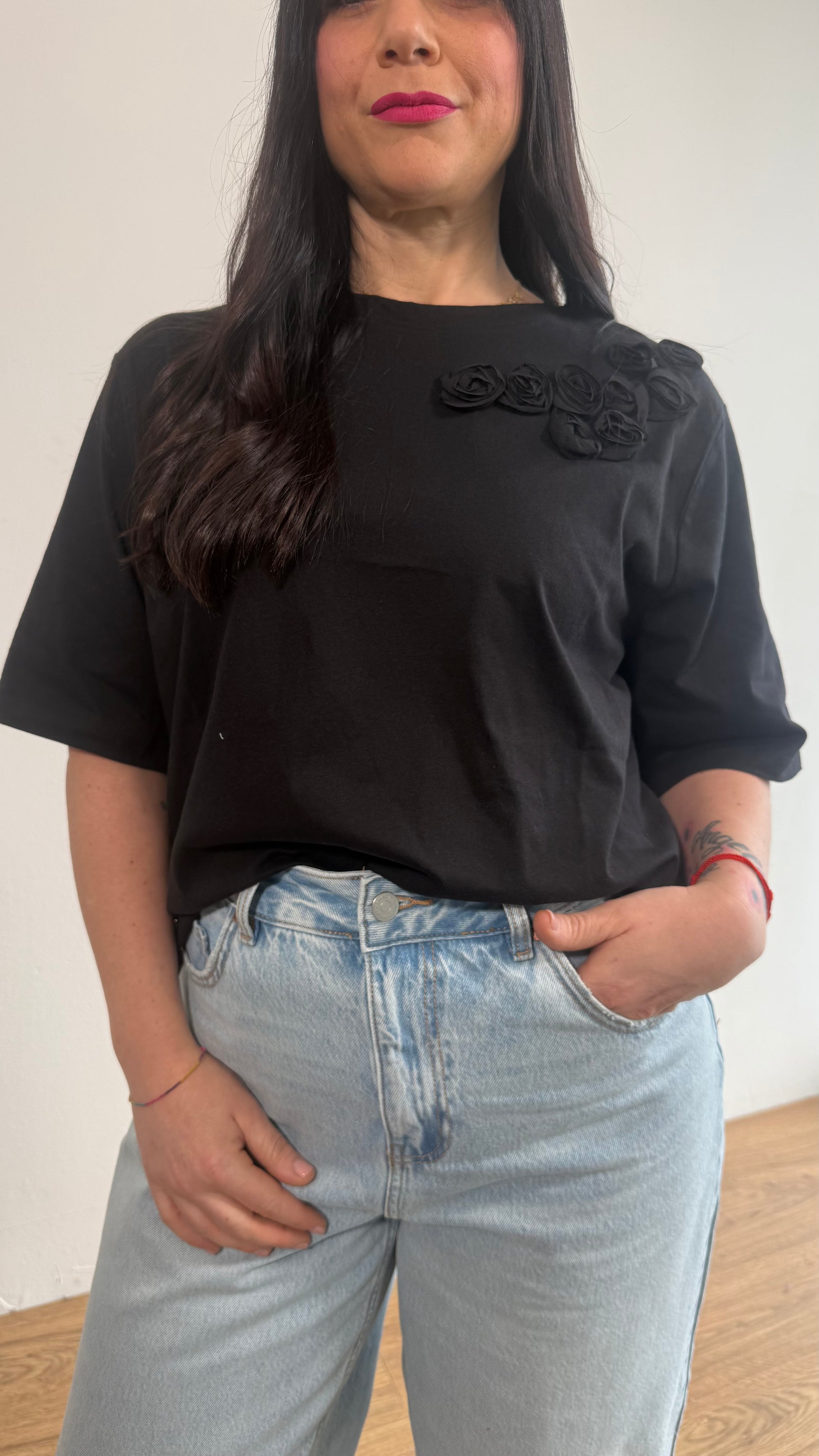 T shirt con inserto roselline in stoffa