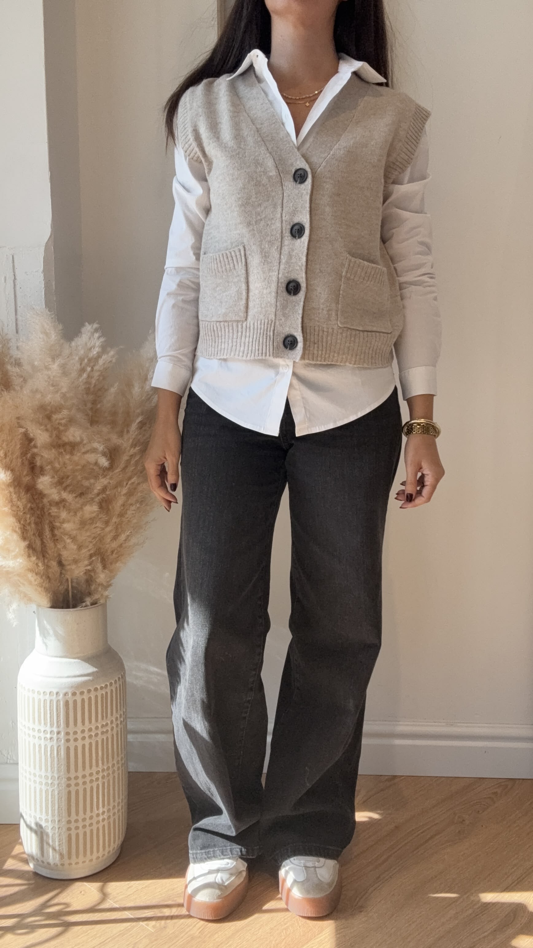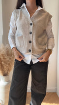 cardigan  a taglie senza manica con taglio dritto e due taschine applicate sul davanti