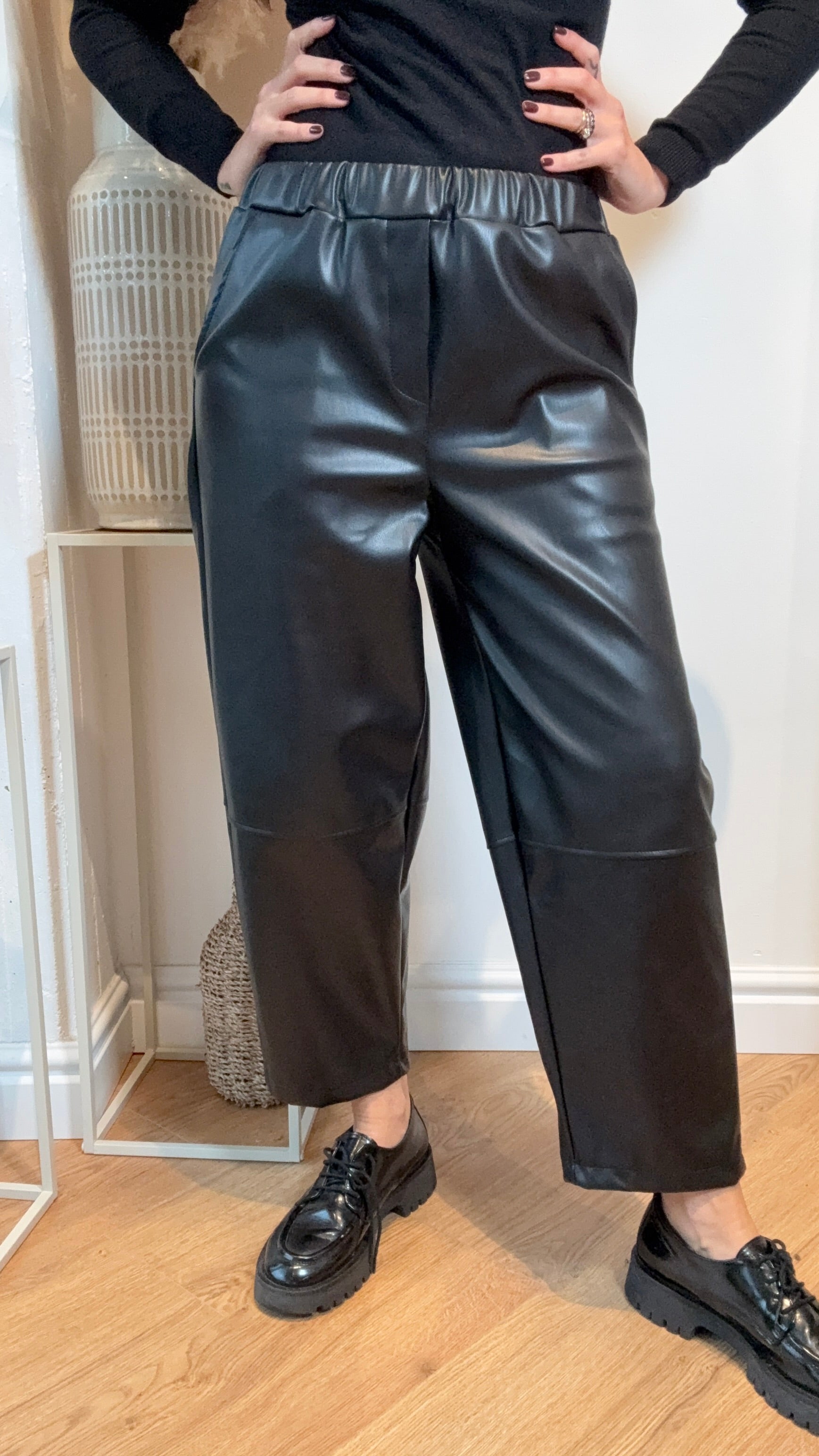 Pantalone taglia unica con elastico in vita, effetto eco pelle 100% poliestere