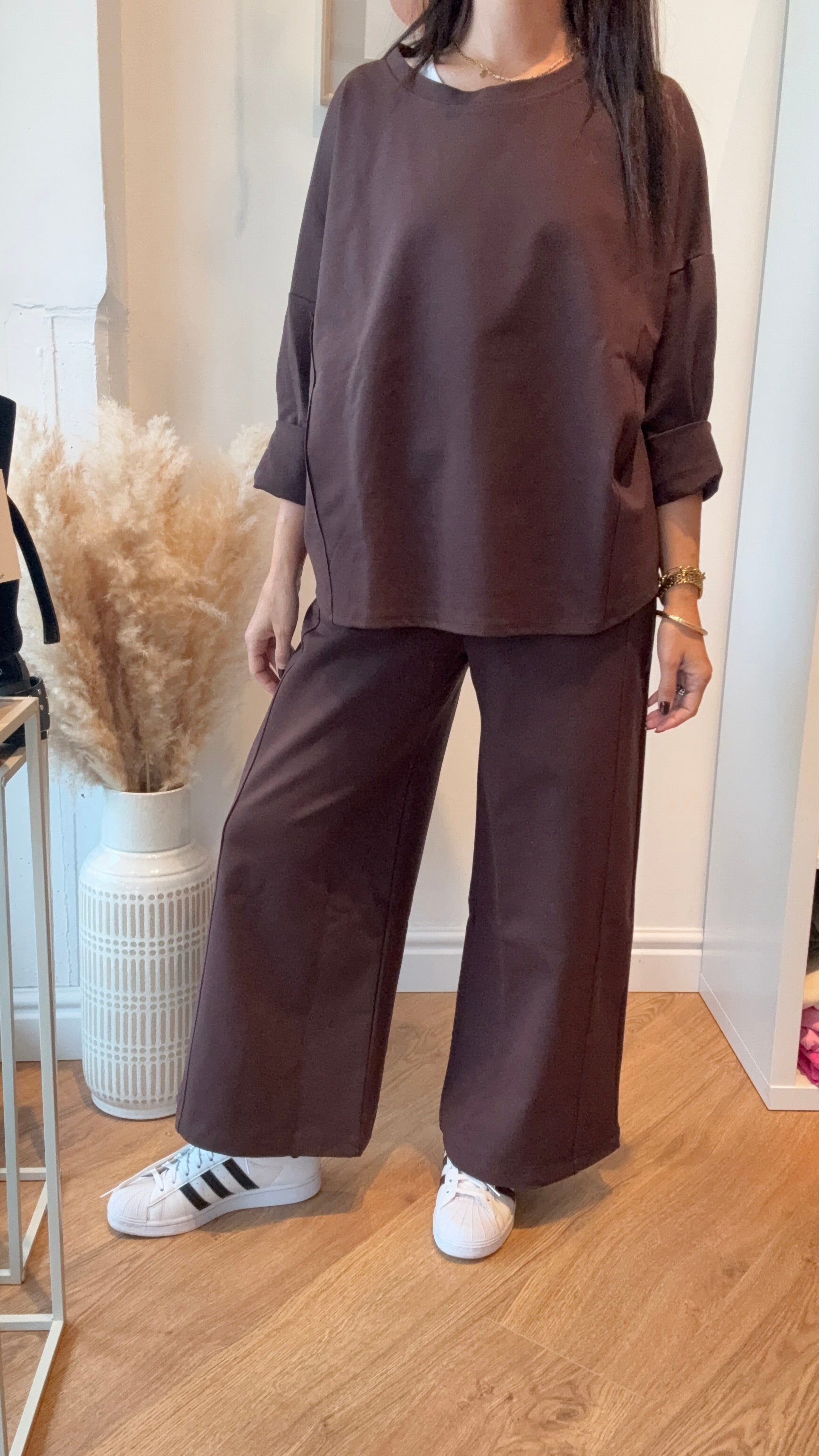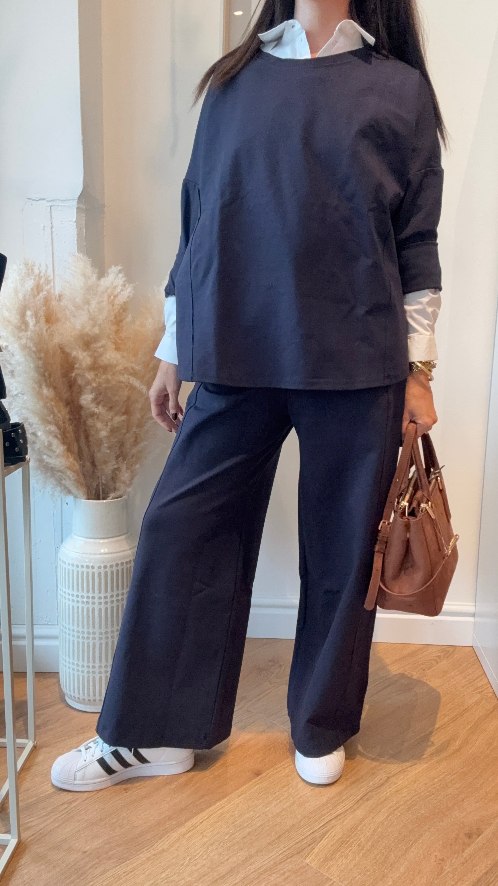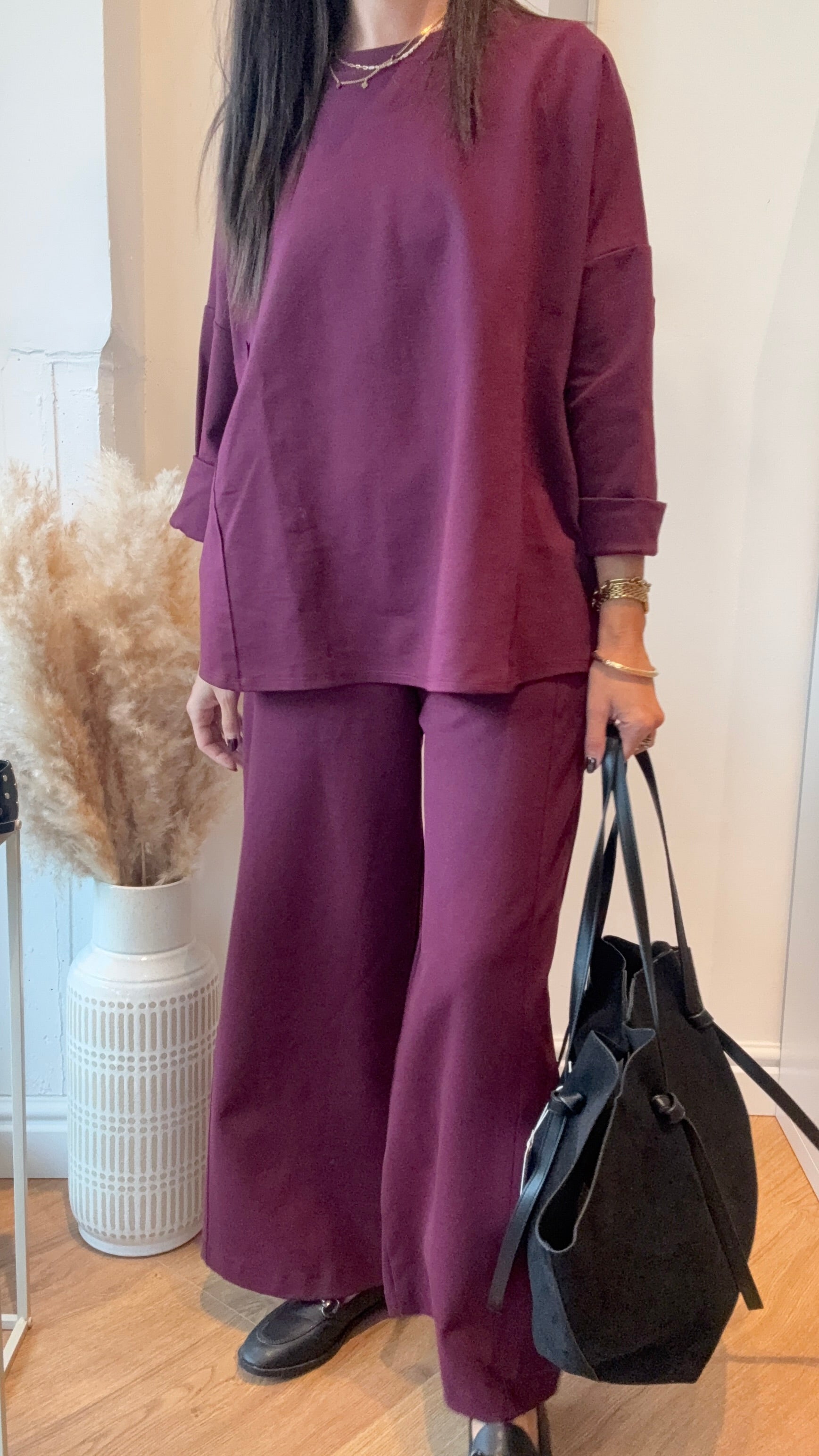 Coordinato in taglia unica con maglia ampia e pantalone palazzo alla caviglia