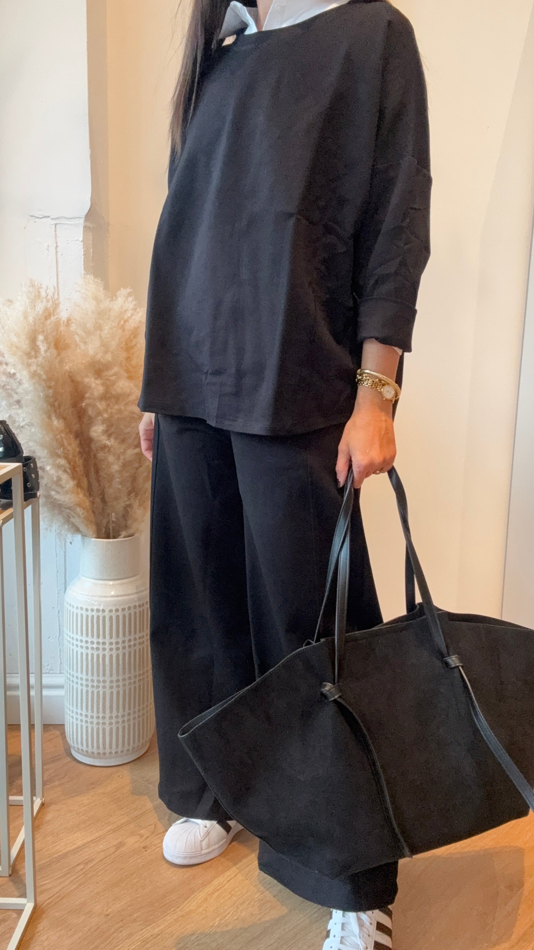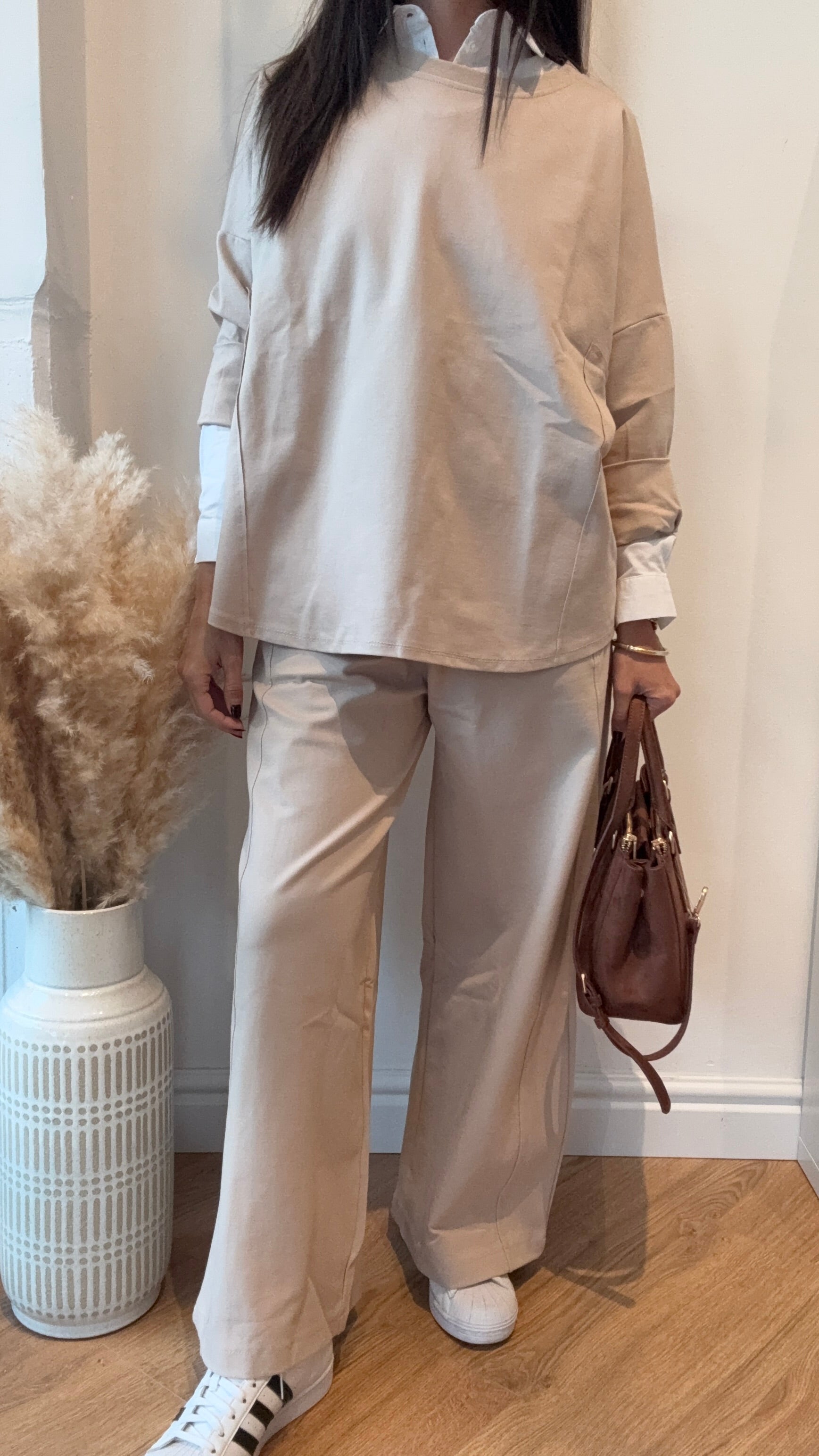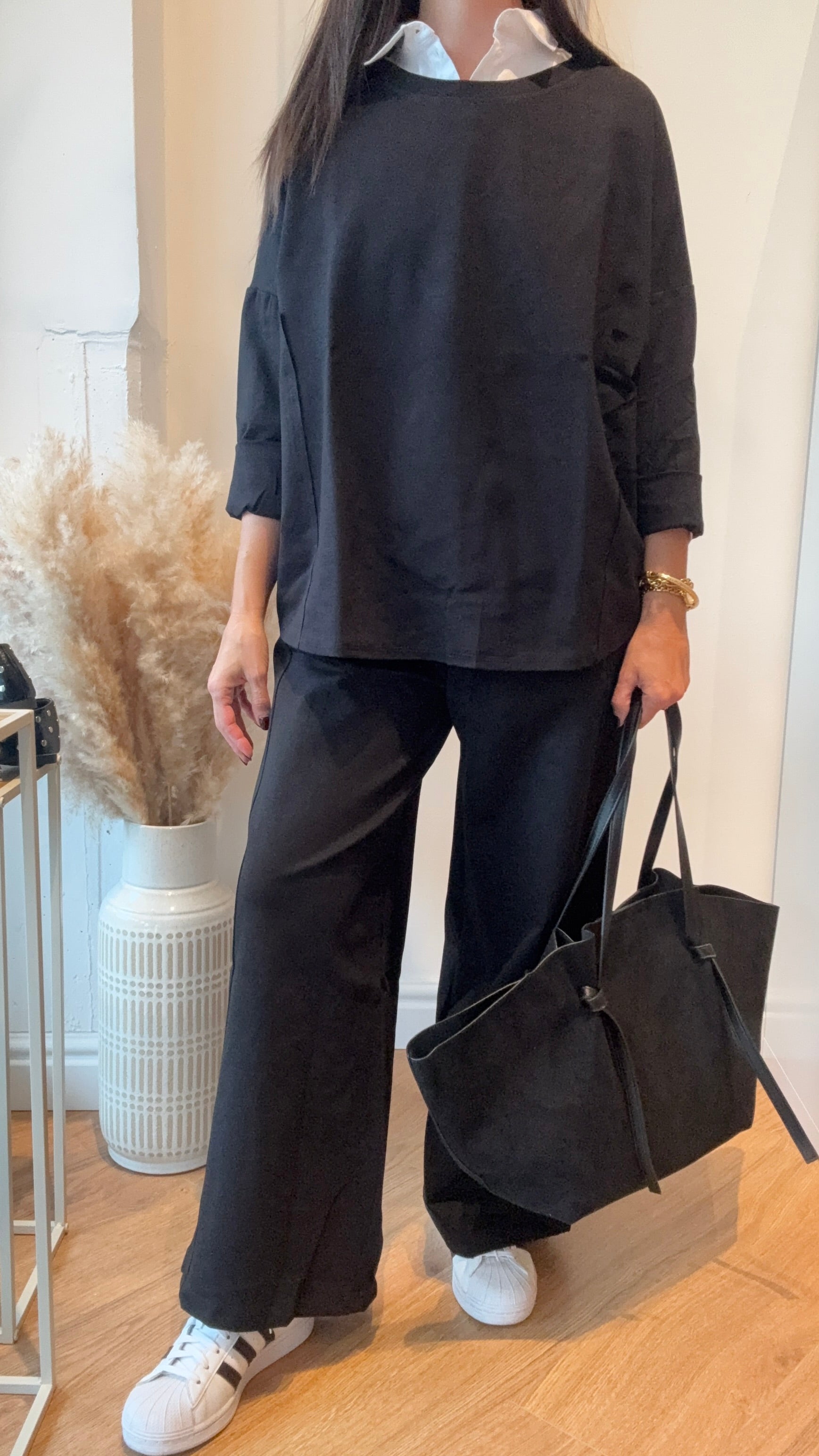 Coordinato in taglia unica con maglia ampia e pantalone palazzo alla caviglia