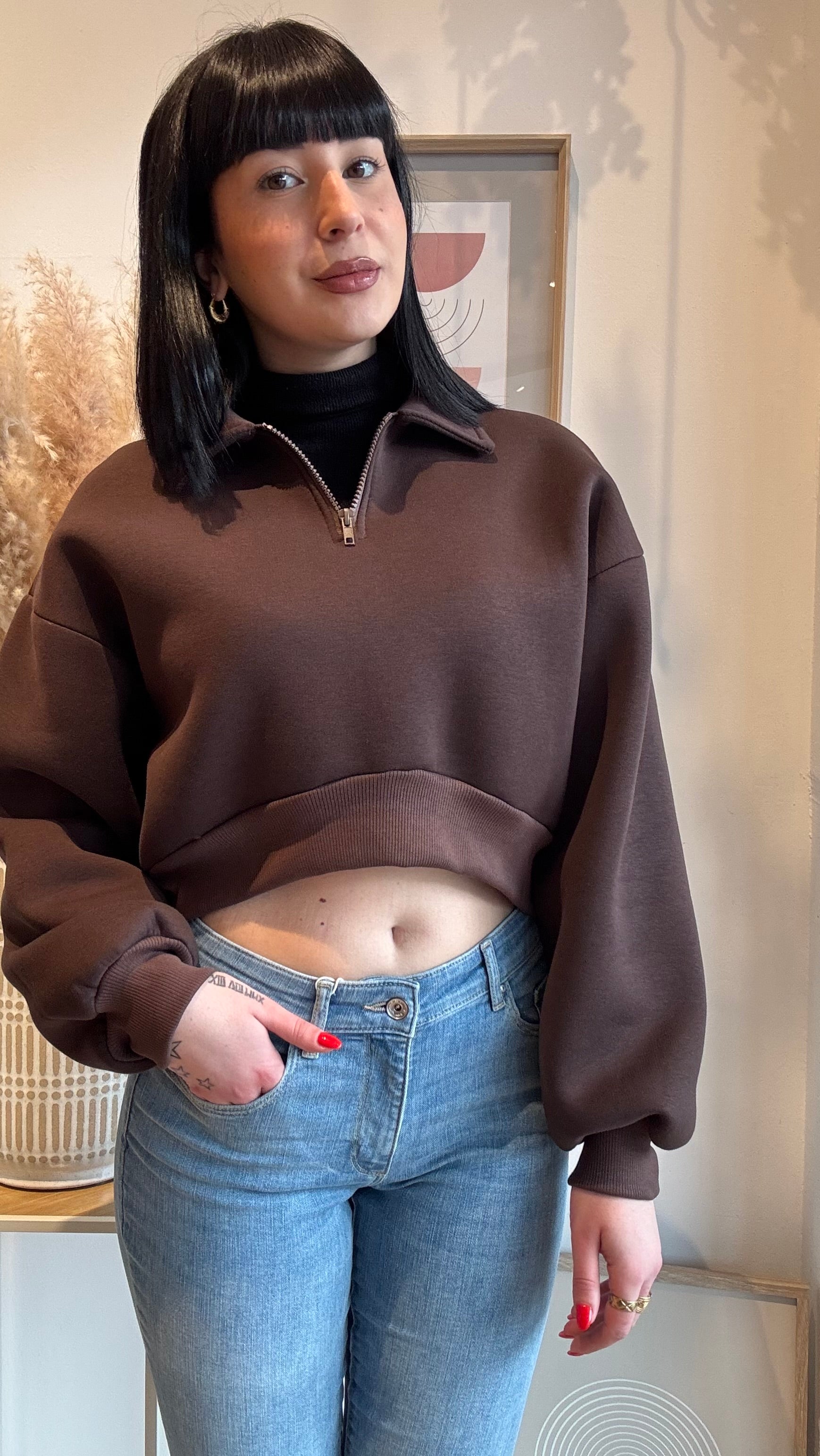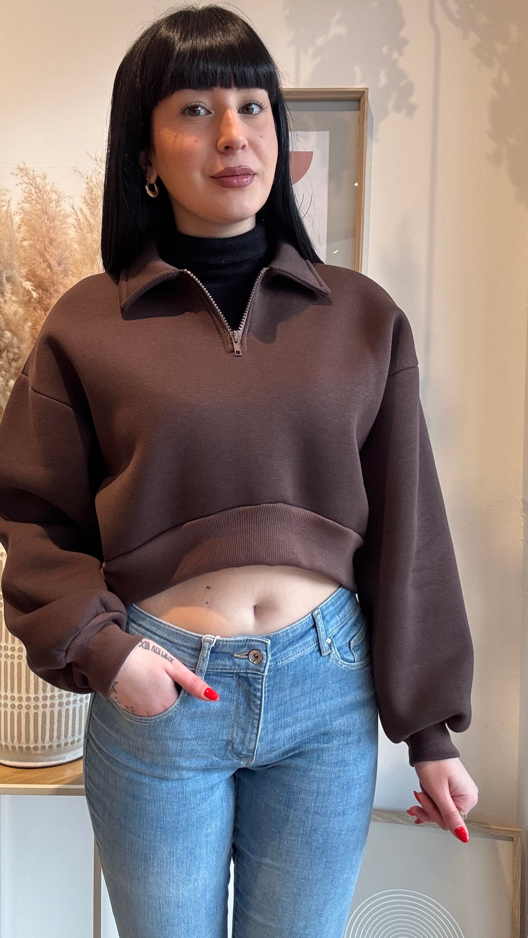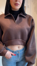Felpa Crop taglia unica felpata con colletto e cerniera